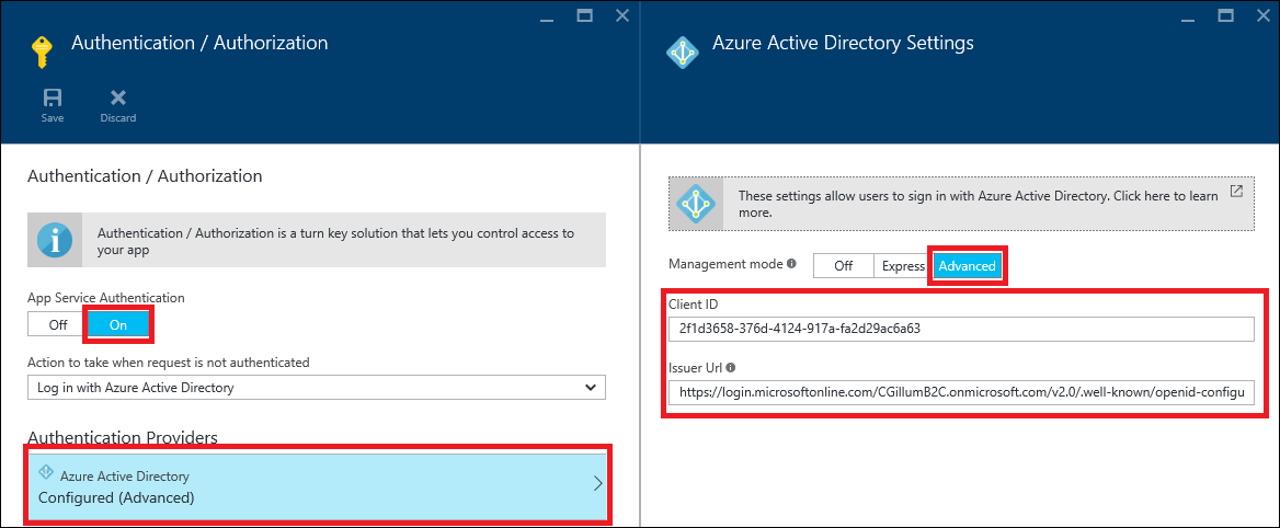 An exciting new preview feature which was recently added to Azure Active Directory is Azure Active Directory B2C. “B2C” stands for “Business to Consumer” and allows a developer to add user and login management to their application with very little (if any) coding. This also includes login integration with social identity providers like Facebook, Amazon, LinkedIn, etc. Check out their documentation and blog posts for more details. My colleague Swaroop from the Azure AD team also has a nice //Build video where you can see it in action. From my perspective, App Service Authentication / Authorization (Easy Auth) shares a similar goal of B2C, which is to make it really easy to build identity into your application. We saw a great opportunity to make these features work well together, giving you both an identity management system as well as login and OAuth token management without requiring a single line of code. In this post, I’ll describe how you can use Easy Auth to add Azure AD B2C capabilities to your App Service Web App.