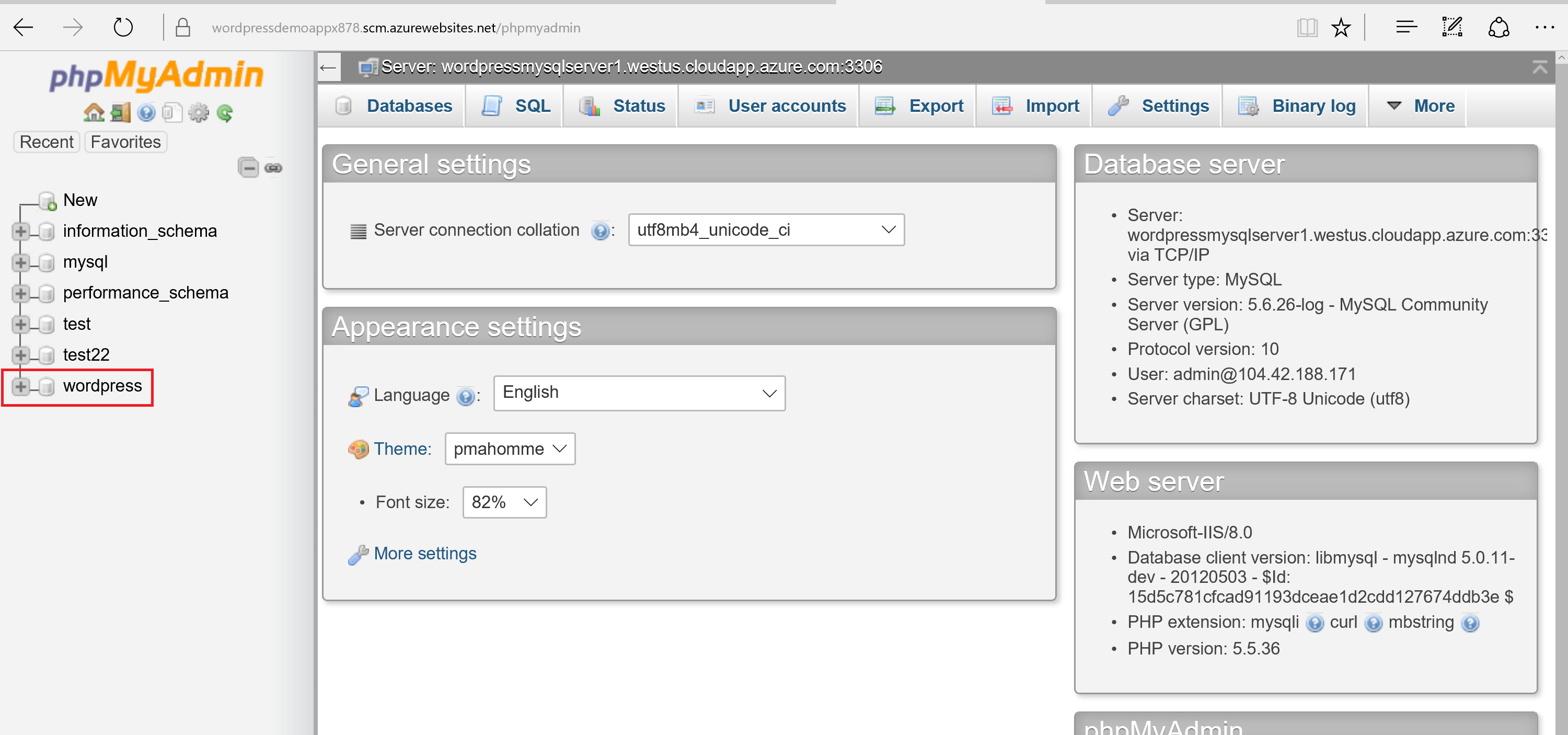 Once you have successfully exported the database, then inspect your MySQL database script to check if your application stores the site URL in the database. If yes, then update the URL to use Azure app service web app URL or custom domain if the custom domain is already pre-configured on your Azure web app. Your script is ready to be imported.