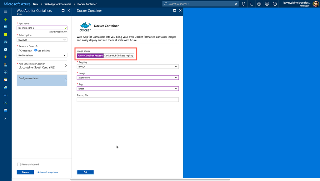 Azure Container Registry as well as enabling container based