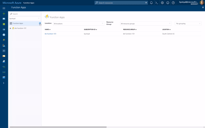Browse Azure Function UI now includes the ability to