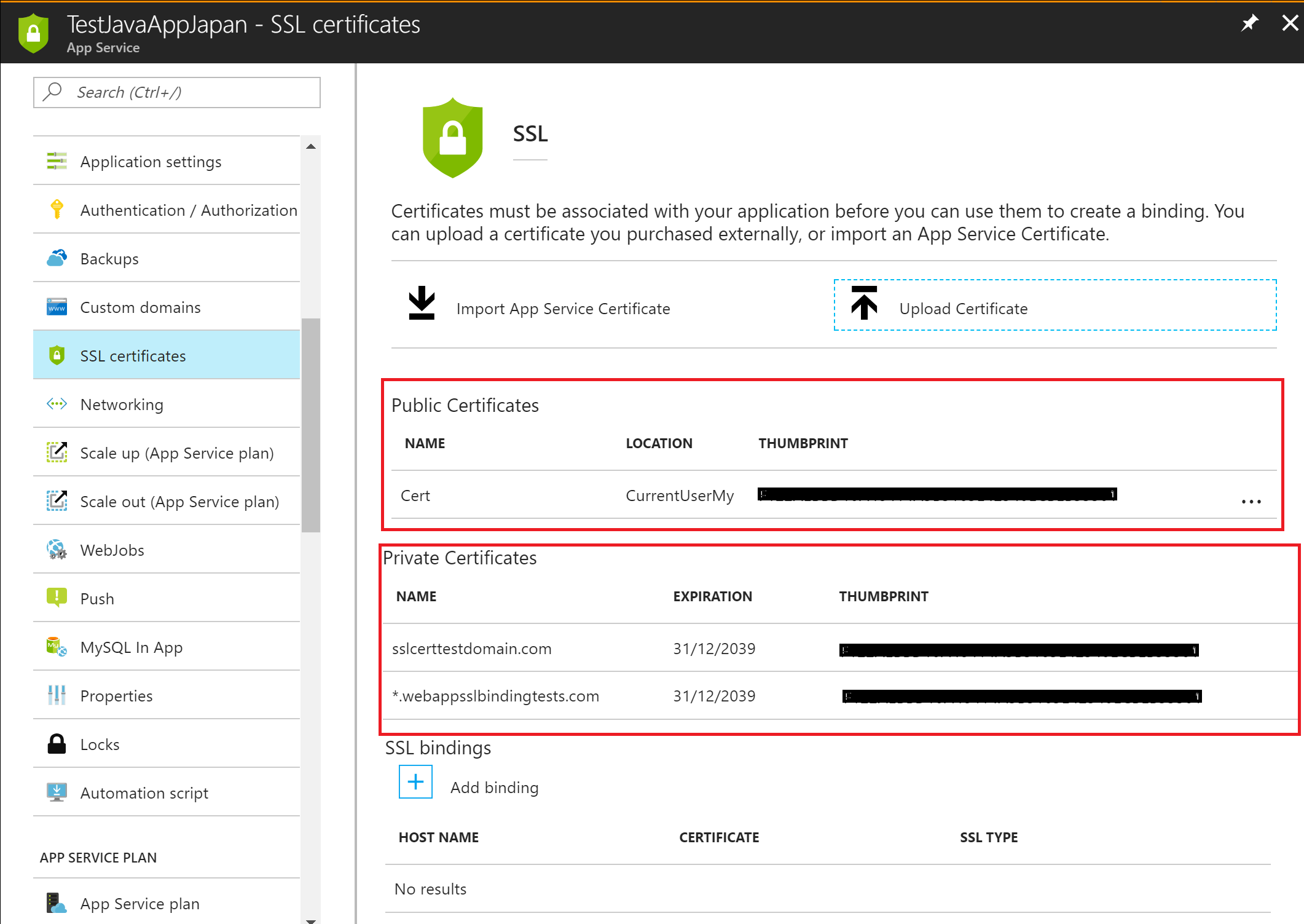 Note SSL certificates is supported only on dedicated App Service Plans and App Service Environments.