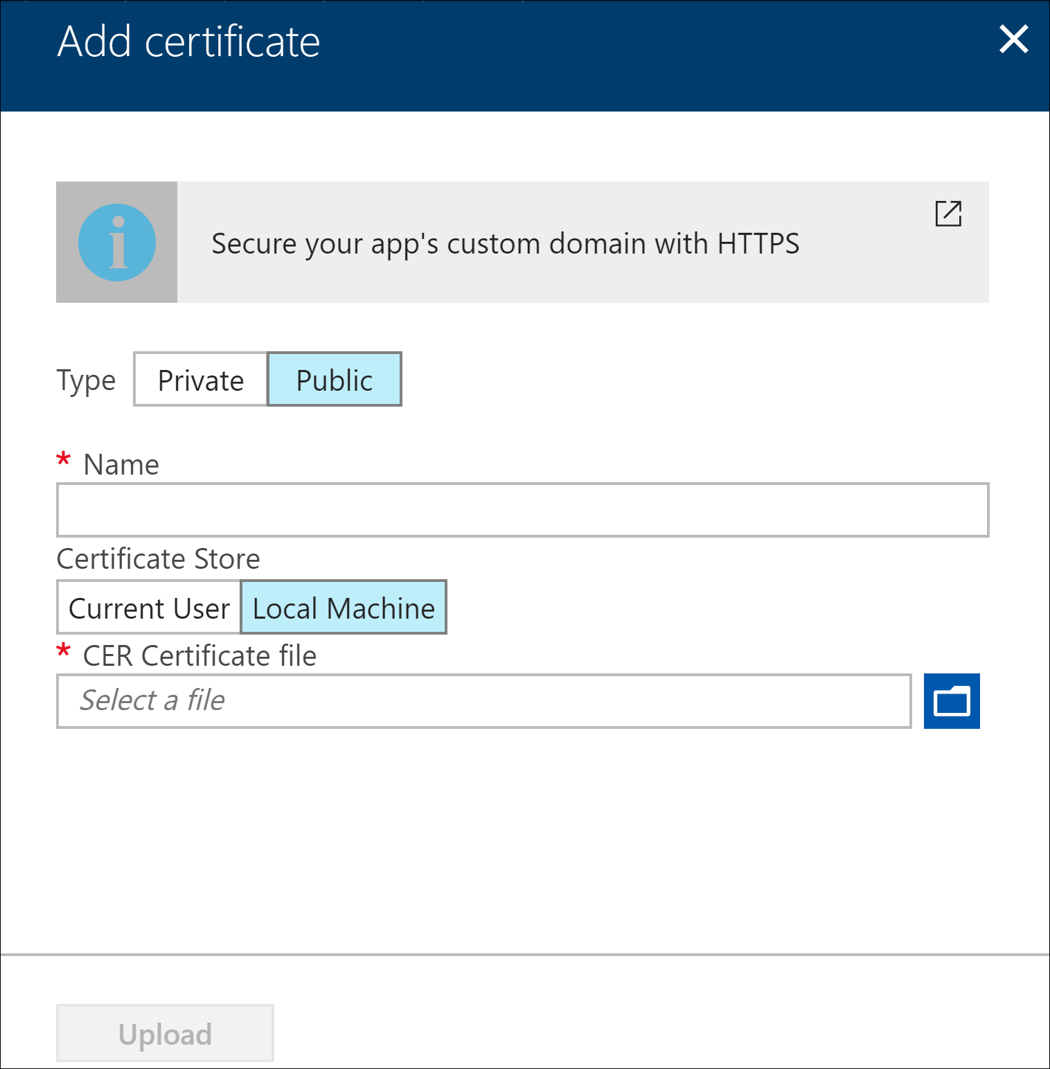 most requested user voice features. Public key certificates let you use self-signed certificates for test/development scenarios amongst other things. You can read more about App Service support for Public Key Certificates