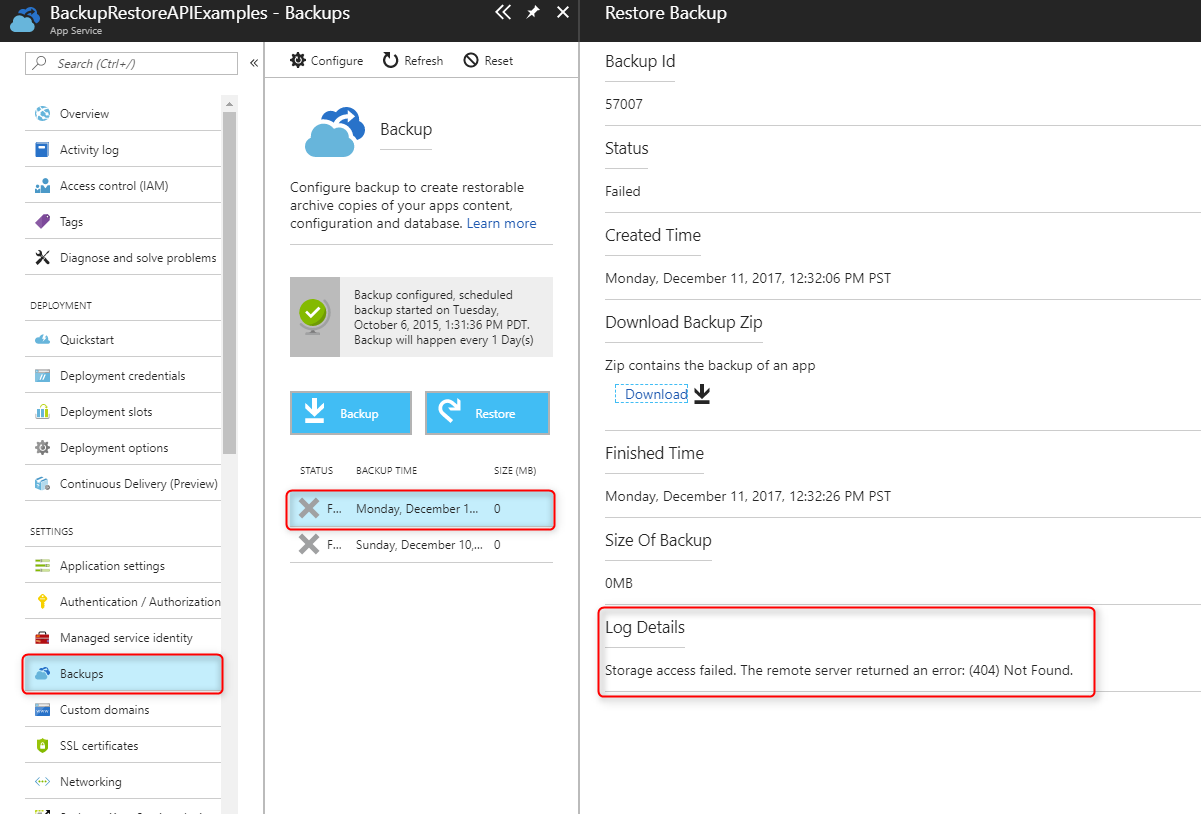 From the backup blade, click on the failing backup and check the