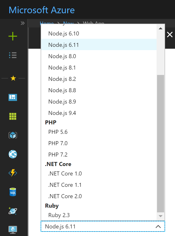 If you're creating a new web app, check them out in the "Runtime Stack" dropdown.