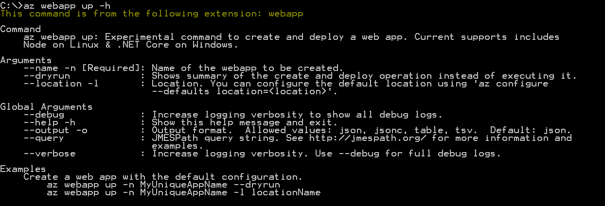 az webapp up --name [app name] --location [optional Azure region name] --dryrun