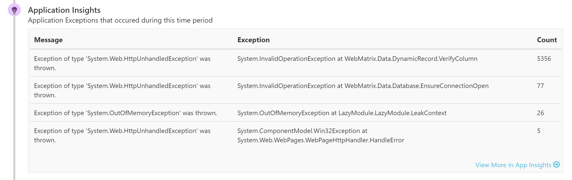 ntegrated with Application Insights to provide code-level insights in context to availability downtimes. Application Insights is Azure’s application performance management and analytics tool that allows you to monitor your application.