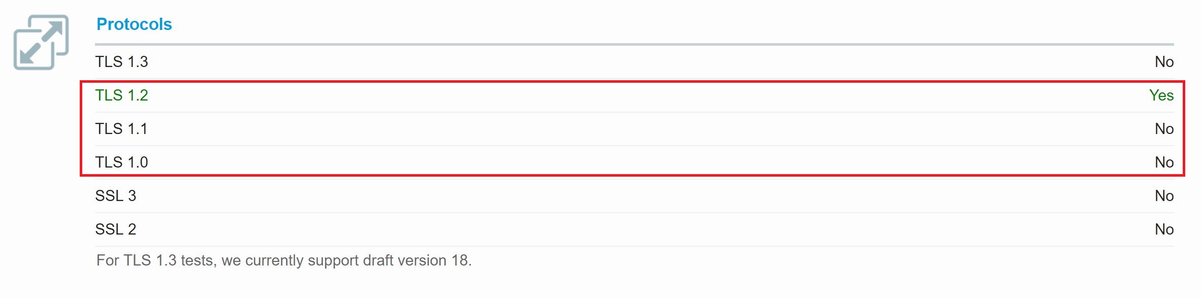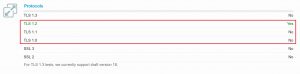 SSL Labs, showing that TLS 1.0 was still accepted, while higher versions were selected.