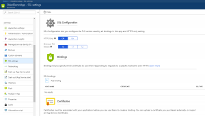 - In the Azure Portal, in the app's menu, browse to SSL Settings option and select which version of SSL you require.