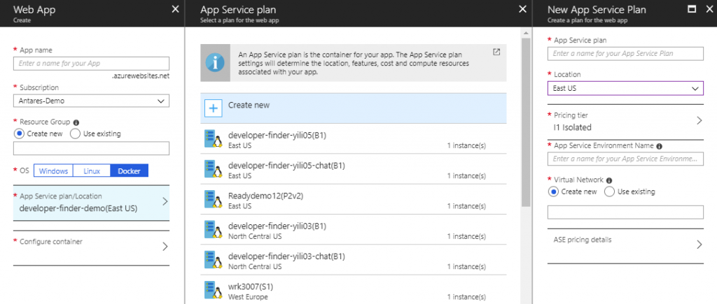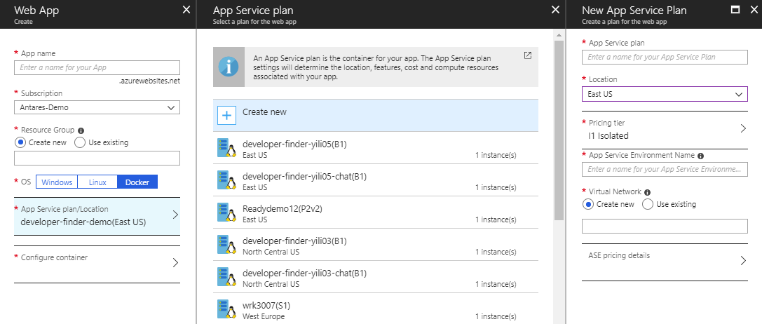 Depending on whether you want an internet accessible endpoint, there are two different kinds of ASEs that you can create: