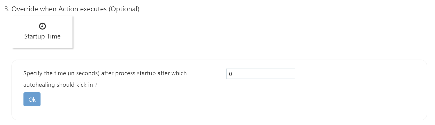 Sometimes when an app has a long startup time, depending on the mitigation rule conditions that are set, it may kick off the mitigation action during app startup, which is not the intended use case. By modifying the startup time, you can specify how much time the mitigation rule should wait after the process startup before the mitigation rule kicks off.