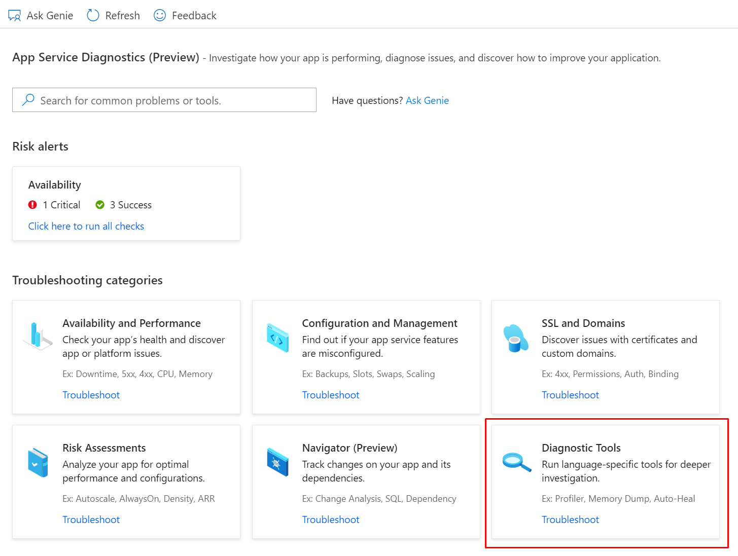 Diagnostic Tools from the App Service Diagnostics homepage.