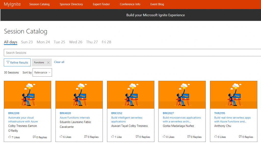 If you're at Ignite, please join us for these following sessions which will give you the very best of what Azure Functions has to offer at Ignite! Just log in to your