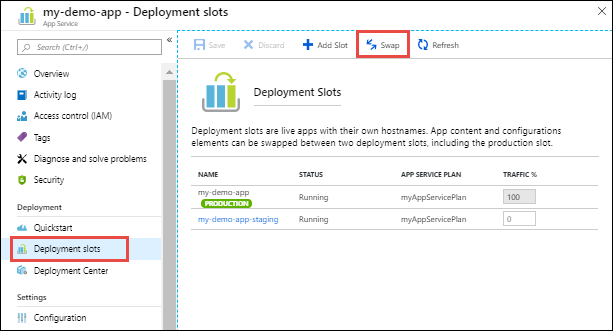 - In the left pane, select Deployment slots.